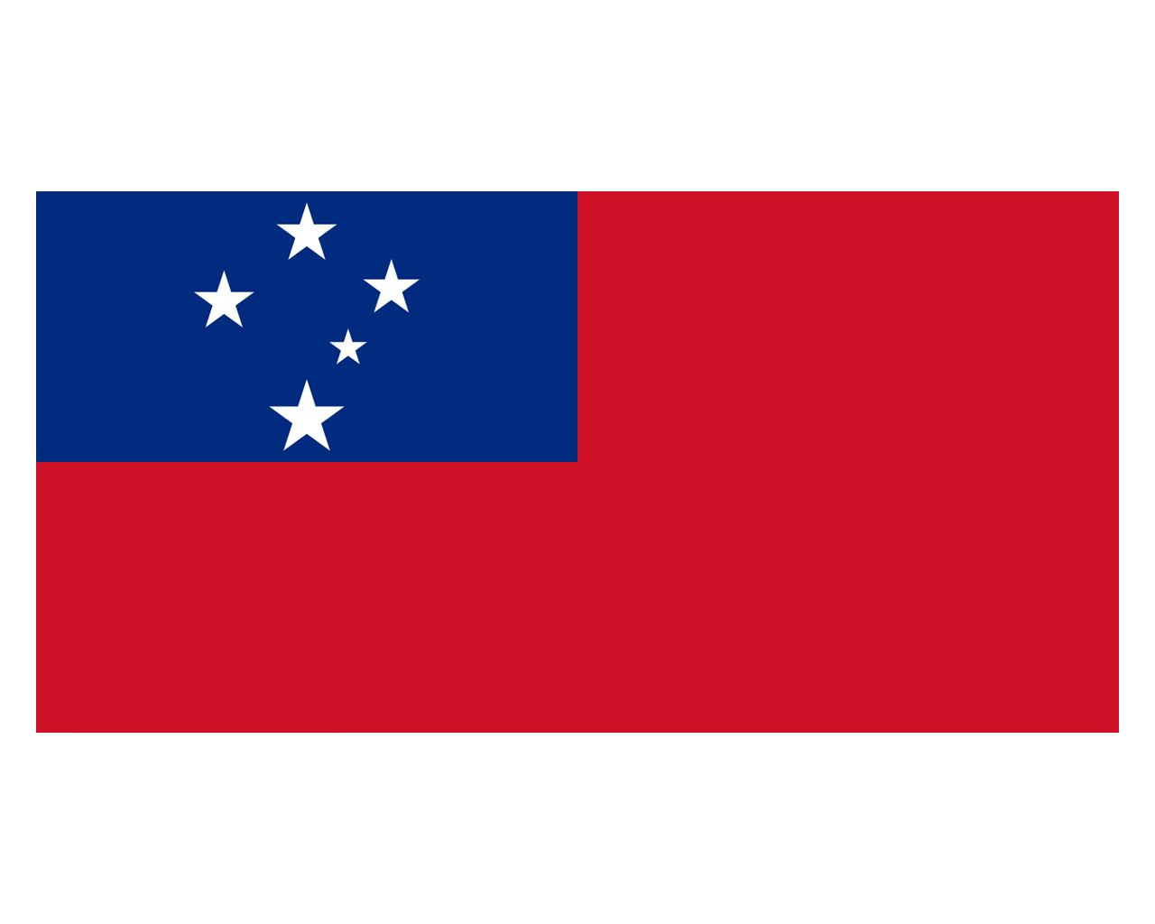 薩摩亞獨立國(The Independent State of Samoa),簡稱薩摩亞,原名西薩摩亞,位于太平洋南部,薩摩亞群島西部,首都阿皮亞。薩摩亞國旗呈橫長方形,長與寬之比為2:1。旗地為紅色,左上方的藍色長方形占旗面四分之一,長方形中有五顆白色五角星,一星較小。紅色象征勇氣,藍色象征自由,白色象征純潔,五顆星代表南十字座。