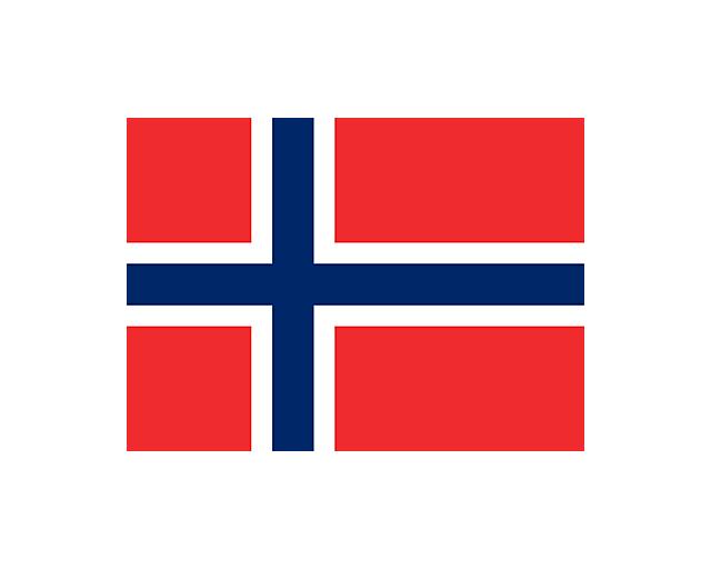 挪威王國(Kongeriket Norge或 Kongeriket Noreg),簡稱“挪威”(挪威語:Norge或Noreg),意為“通往北方之路”,是北歐五國之一,位于斯堪的納維亞半島西部,又稱萬島之國。挪威國旗呈長方形,長寬之比為11:8。紅色旗面,偏左側繪有藍白色十字。挪威曾為丹麥所統治,國旗十字的來歷與丹麥國旗的十字來歷相同。藍、白、紅象征著自由與獨立。它的國旗有兩種,政府機構懸掛燕尾式國旗,其他場合懸掛上述橫長方形國旗。