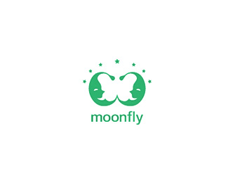 MOONFLY家紡品牌標志設計欣賞,利用對稱的手法形成的負形空間是一個蝴蝶的圖案,融入月亮、睡眠元素,可應用于家紡類的品牌標志。