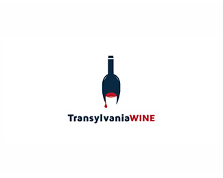 TRANSYLVANIAWINE葡萄球品牌標志,使用酒瓶與酒的負形空間結合構成的主識別圖形很好的詮釋了產品的定位。