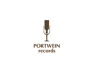 Portwein點酒錄音工作室標志,正立的酒杯與倒立的酒瓶組合成抽象的麥克風的圖形是該工作室的創意識別圖形。
