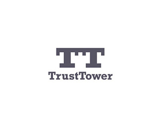TRUSTTOWER信托塔標(biāo)志,兩個相連的字母“T”構(gòu)成了“城堡”形狀的負(fù)形空間。