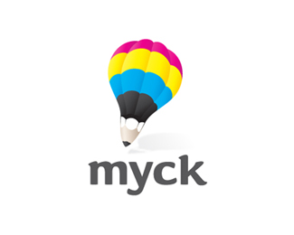 Myck字謎CMYK:青色,洋紅色,黃色和黑色這四個印刷顏色,做為設(shè)計師你每天都會看到這四個顏色,Myck這個設(shè)計師個人標(biāo)志采用這些顏色和鉛筆尖、熱氣球一起設(shè)計出一個漂亮的標(biāo)志。