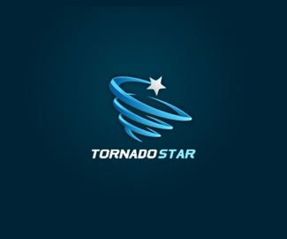 龍卷風之星標志設計欣賞 ,設計采用藍色的線條進行旋轉,勾勒出龍卷風風暴的運動形態。