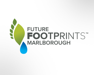 Future Footprints未來腳印抽象標(biāo)志創(chuàng)意設(shè)計(jì),該標(biāo)志融入葉子和水滴的元素組合成腳印的圖形,整體以藍(lán)色和綠色作為主識(shí)別色,可以應(yīng)用于未來科技或生態(tài)相關(guān)的創(chuàng)意標(biāo)志設(shè)計(jì)。