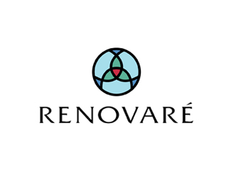 Renovare抽象幾何標志設計欣賞,使用幾何圖形組合成的創意識別圖形,整體以紅色、藍色、綠色作為主識別色。