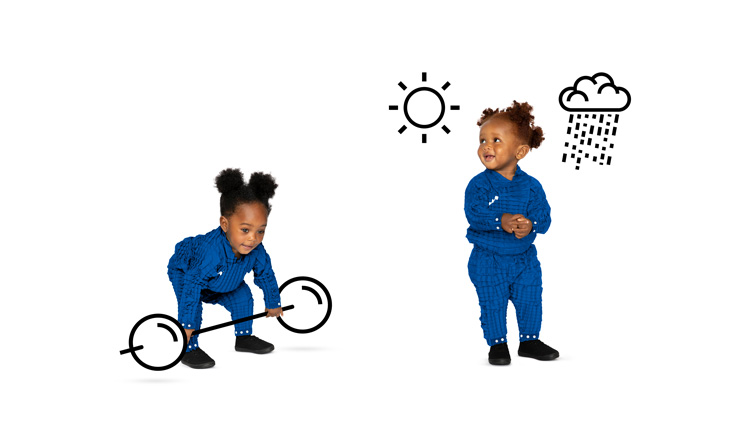 “之前,Petit Pli使用圖形圖標來顯示產品特性,比如水滴表示防水,”皮特曼說。“這是相當技術性的,我們想用更人性化的方式來表現這些特征。”
