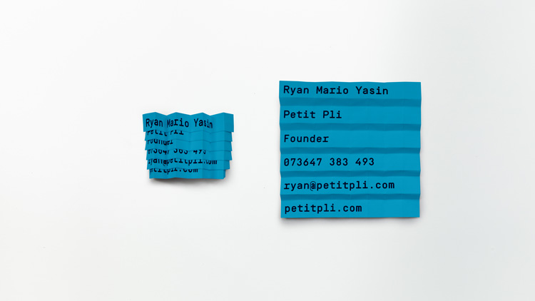 NB工作室為Petit Pli設計的服裝vi設計中l(wèi)ogo設計反映了材料折疊后的協奏曲形狀,并由一個錯位的單詞標記組成。