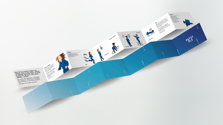 PetitPli彈性兒童服裝品牌設計策劃中公司的整體品牌定位基于四個主題:可持續(xù)性、時尚、兒童和空間,因為公司創(chuàng)始人是一名航空航天工程師,并將這些知識運用到服裝結構中。