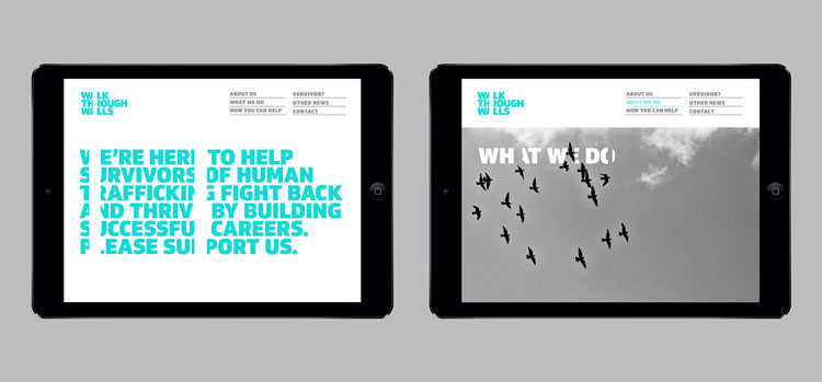 馬克工作室與斯科特·佩里和林賽·坎普合作,從零開始創建了這個品牌,包括“穿越墻壁”這個名字,它取代了“職業學院”這個工作頭銜。約翰遜銀行(Johnson Banks)的聯合創始人邁克爾?約翰遜(Michael Johnson)構想的《販賣之外的生活》(A strapline A Life Beyond Trafficking)也被采納。